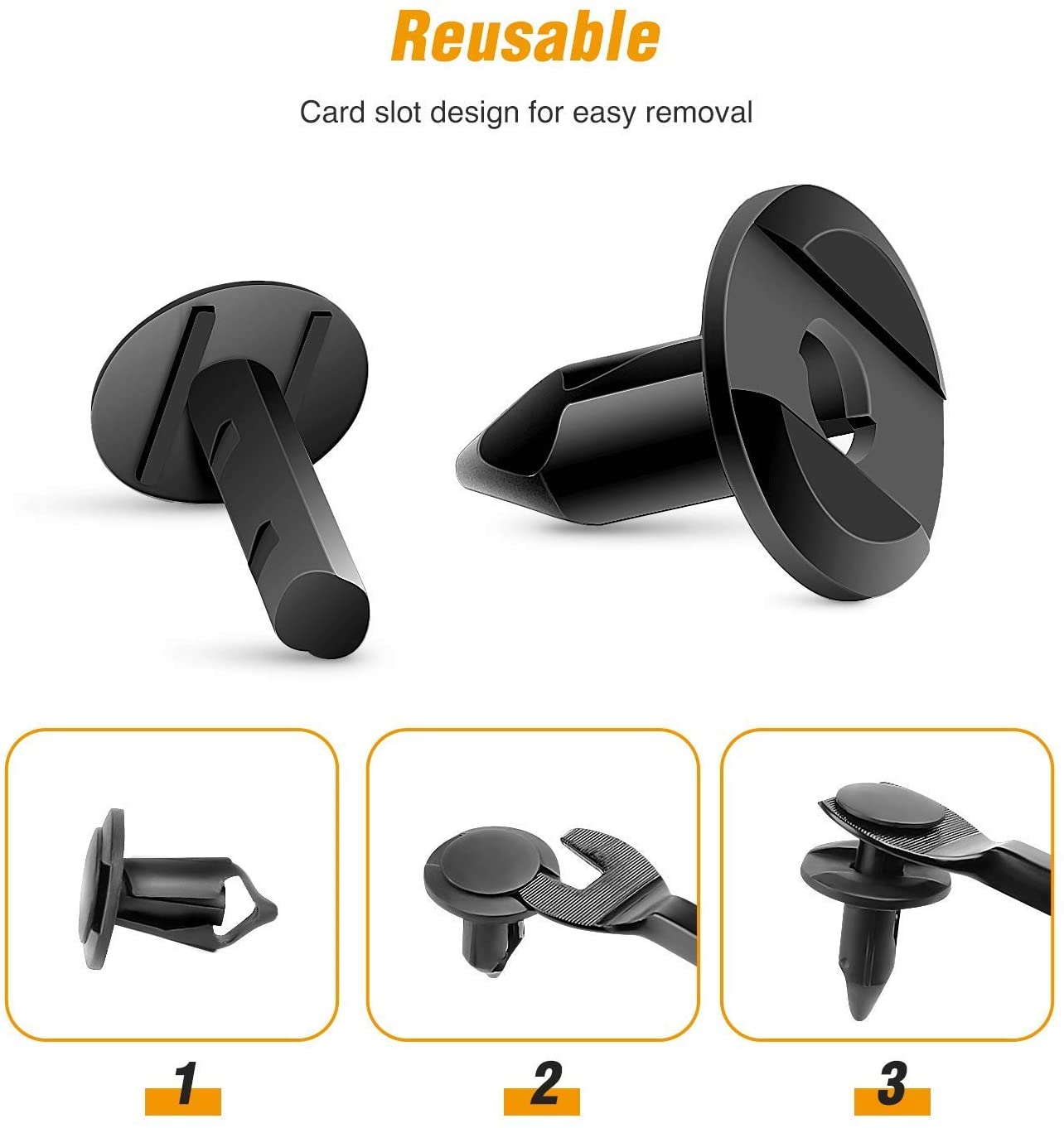 • Universal Fit: These universal push-type plastic clips will fit on most auto parts with an 8mm hole, hold your parts very tightly