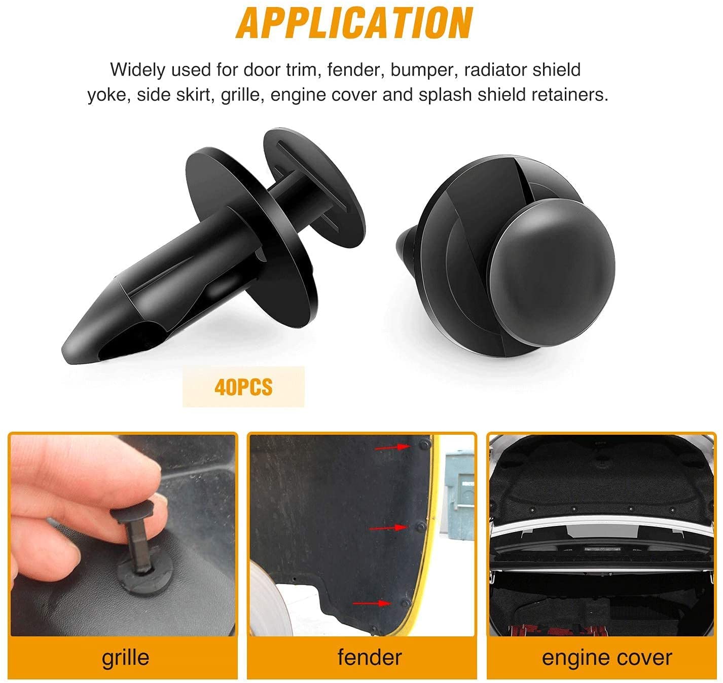 • Multiple Use: Widely used for door trim, radiator shield yoke, fender, bumper, side skirt, grille, engine cover and splash shield retainers