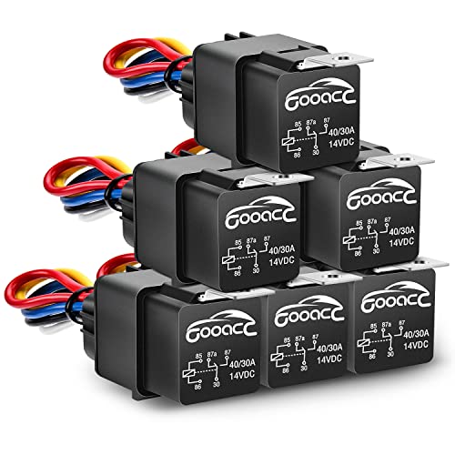 GOOACC 6 Pack Waterproof Heavy Duty 12 AWG Tinned Copper Wires 5PIN SPDT Bosch Style 12V Automotive Relay and Harness Set,2 Year Warranty